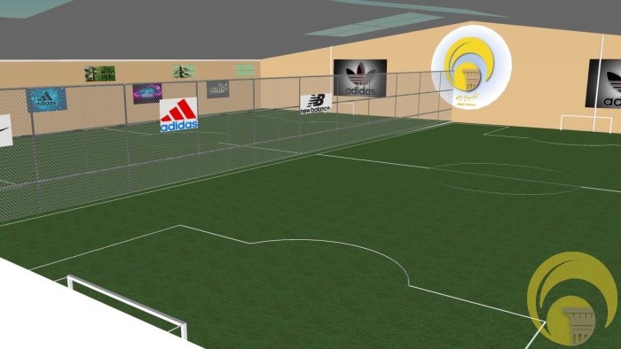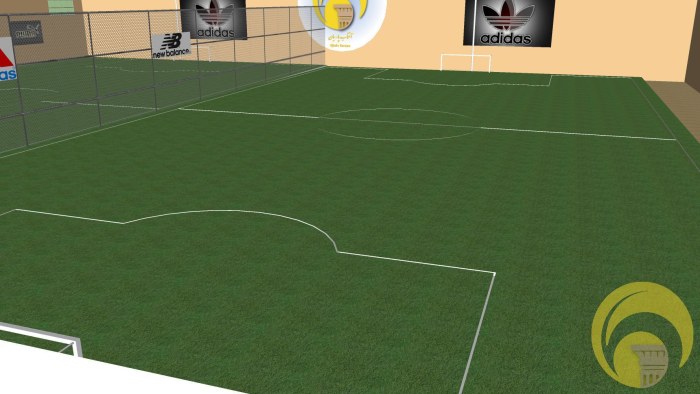 - دو زمين استاندارد فوتسال =۲*(۴۲*۲۵)=۲۱۰۰