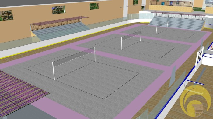 - سه زمين استاندارد واليبال۳*(۱۸*۹)=۴۸۶