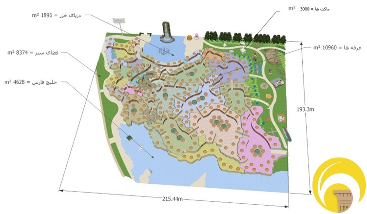 - غرفه ها = ۱۰۹۶۰ (در اندازه های ۵۵ متری مجموعا به تعداد=۱۹۹ واحد)