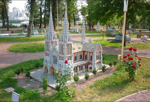 سالهاي اخير ساخته شده است قرار مي گيرد و دور تا دور هر ماكت و فضاي اطراف پارك به وسيله گل ها، چمن و درختان